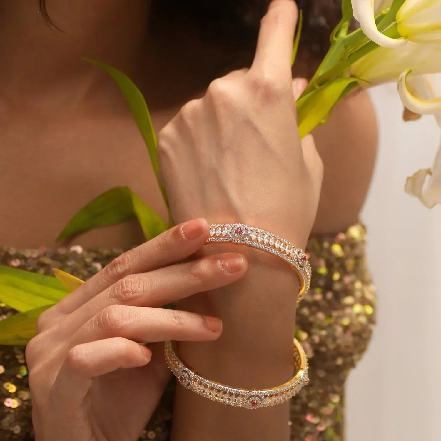 These dazzling CZ bangles are crafted with high quality CZ stones in different size and shapes to illuminate this bangle, making a striking statement.