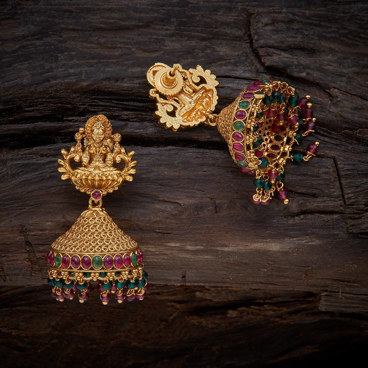 Base Metal: Copper Alloy Stone: Synthetic Stones Earring Weight: 25 Earring Length (cms): 5 Earring Style: Jhumkas Earring Closure Type: Push Back