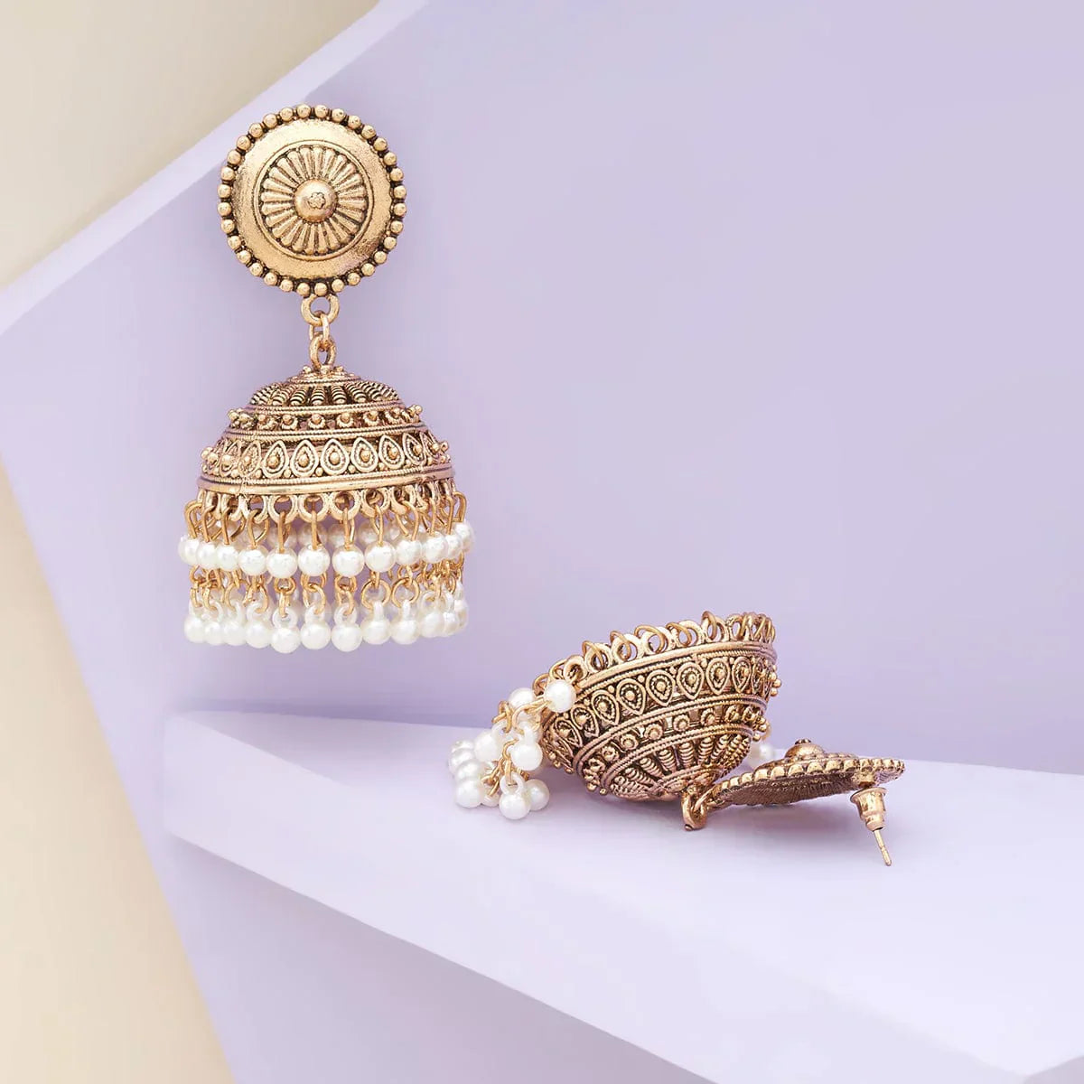 Base Metal: Copper Alloy Stone: Synthetic & Beads Earring Weight: 41 Earring Length (cms): 7 Earring Style: Jhumkas Earring Closure Type: Push Back