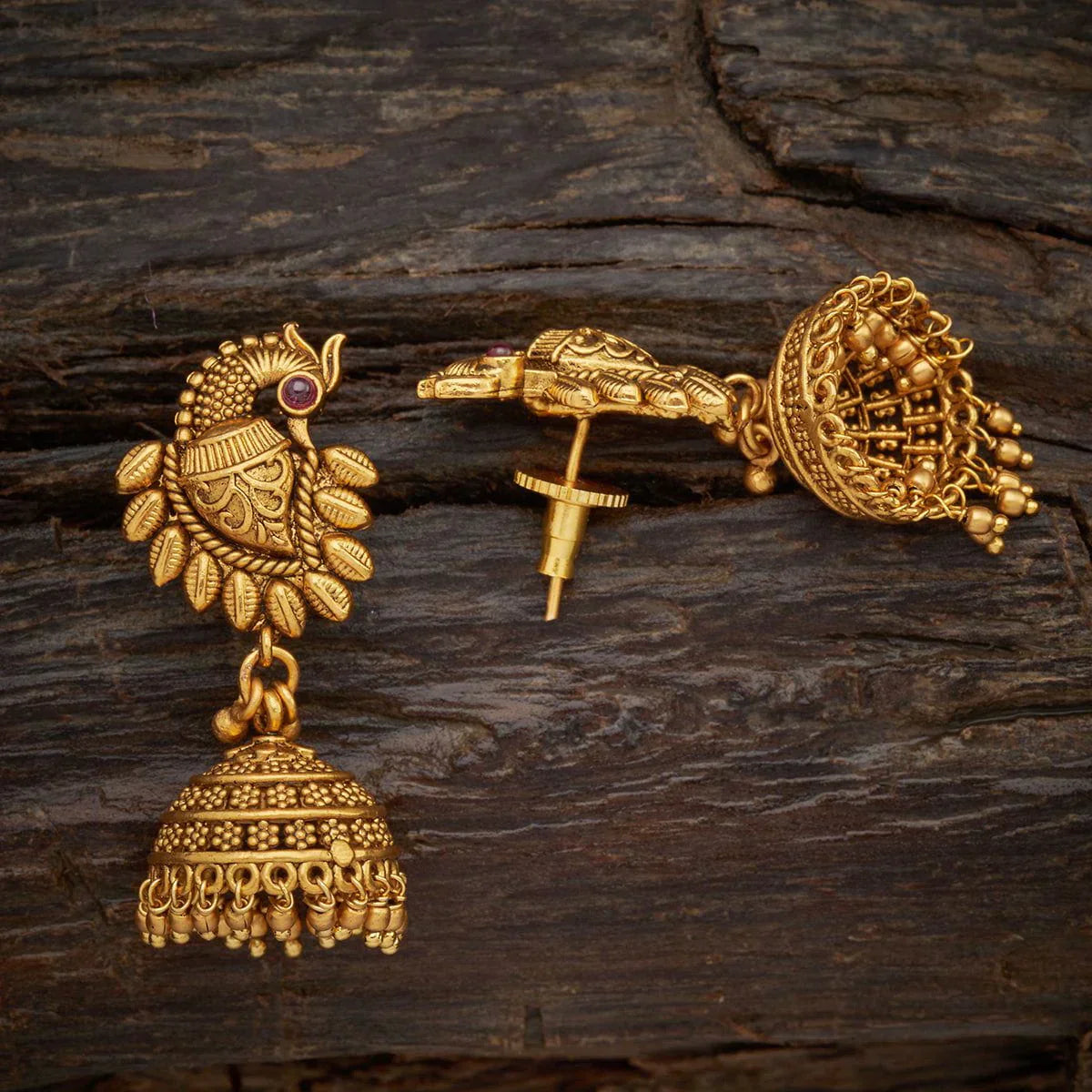 Base Metal: Copper Alloy Stone: Synthetic Stones Earring Weight: 14 Earring Length (cms): 4 Earring Style: Jhumkas Earring Closure Type: Push Back