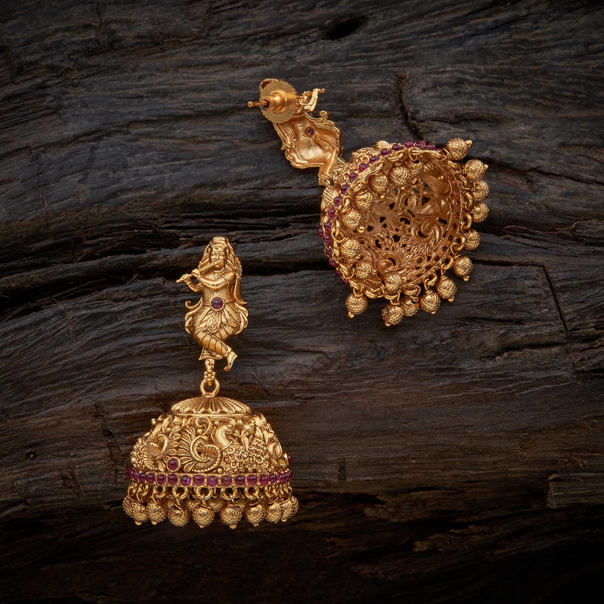 Base Metal: Copper Alloy Stone: Synthetic Stones Earring Weight: 33 Earring Length (cms): 5 Earring Style: Jhumkas Earring Closure Type: Push Back