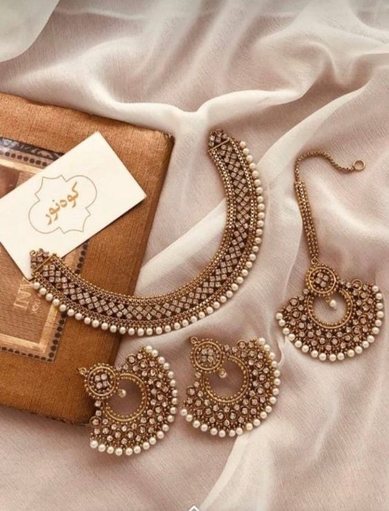 Antique style indian ethnic choker jewellery set earrings jhumka matha tikka choker necklace set half head