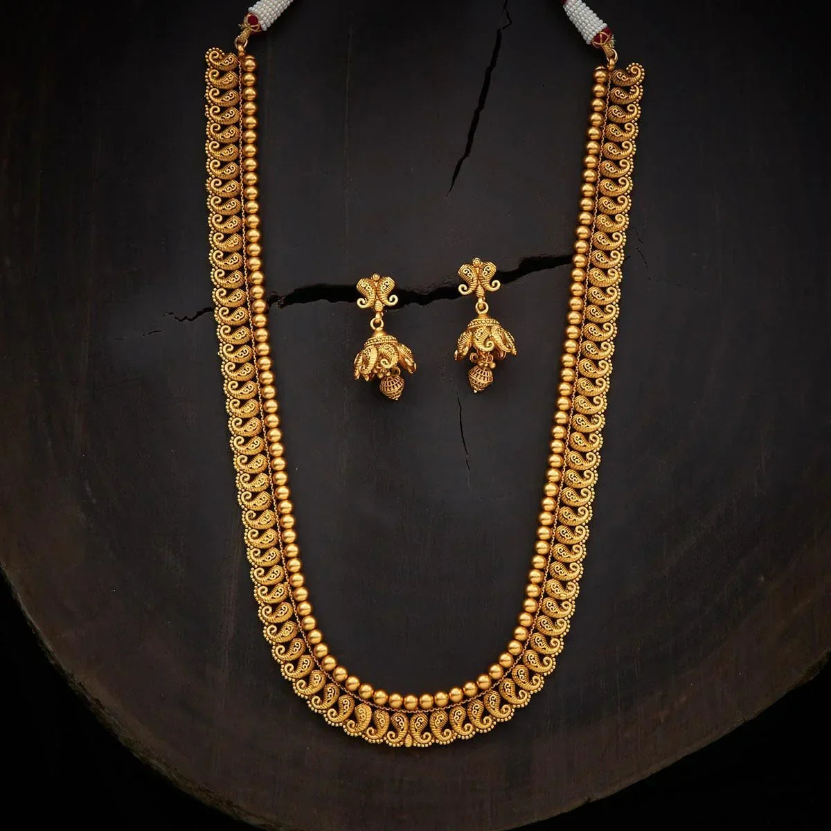 Colour NA Polish Gold Base Metal Copper Alloy Stone NA Necklace Weight (gms) 121 Earring Weight 22 Earring Length (cms) 5 Tikka Weight (gms) - Earring Style Jhumka Earring Closure Type Push Back Necklace Details Adjustable Thread