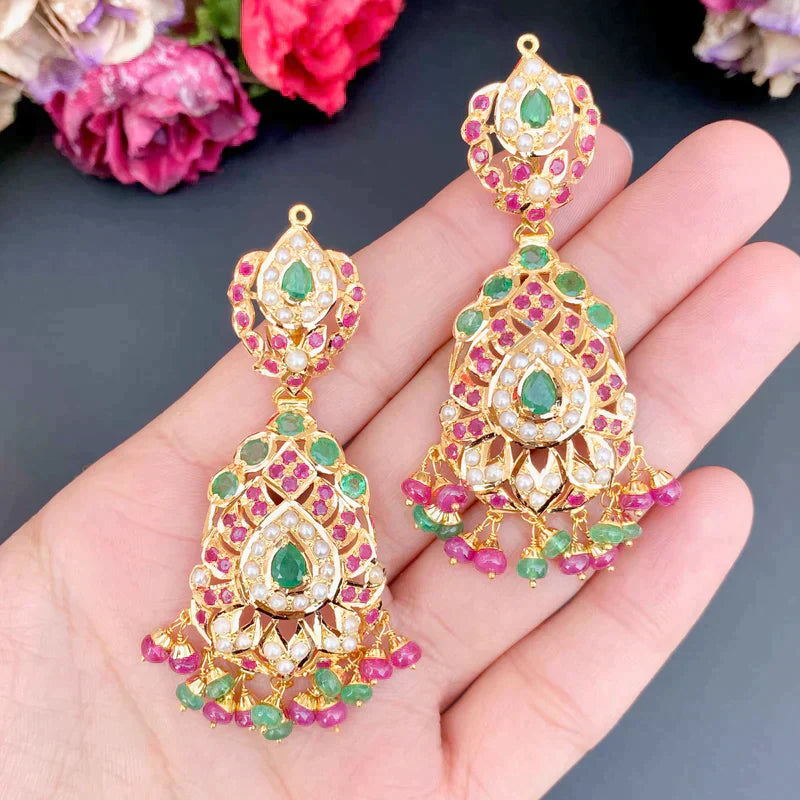 GOLD NECKLACE SET STUDDED WITH PRECIOUS EMERALDS AND RUBIES