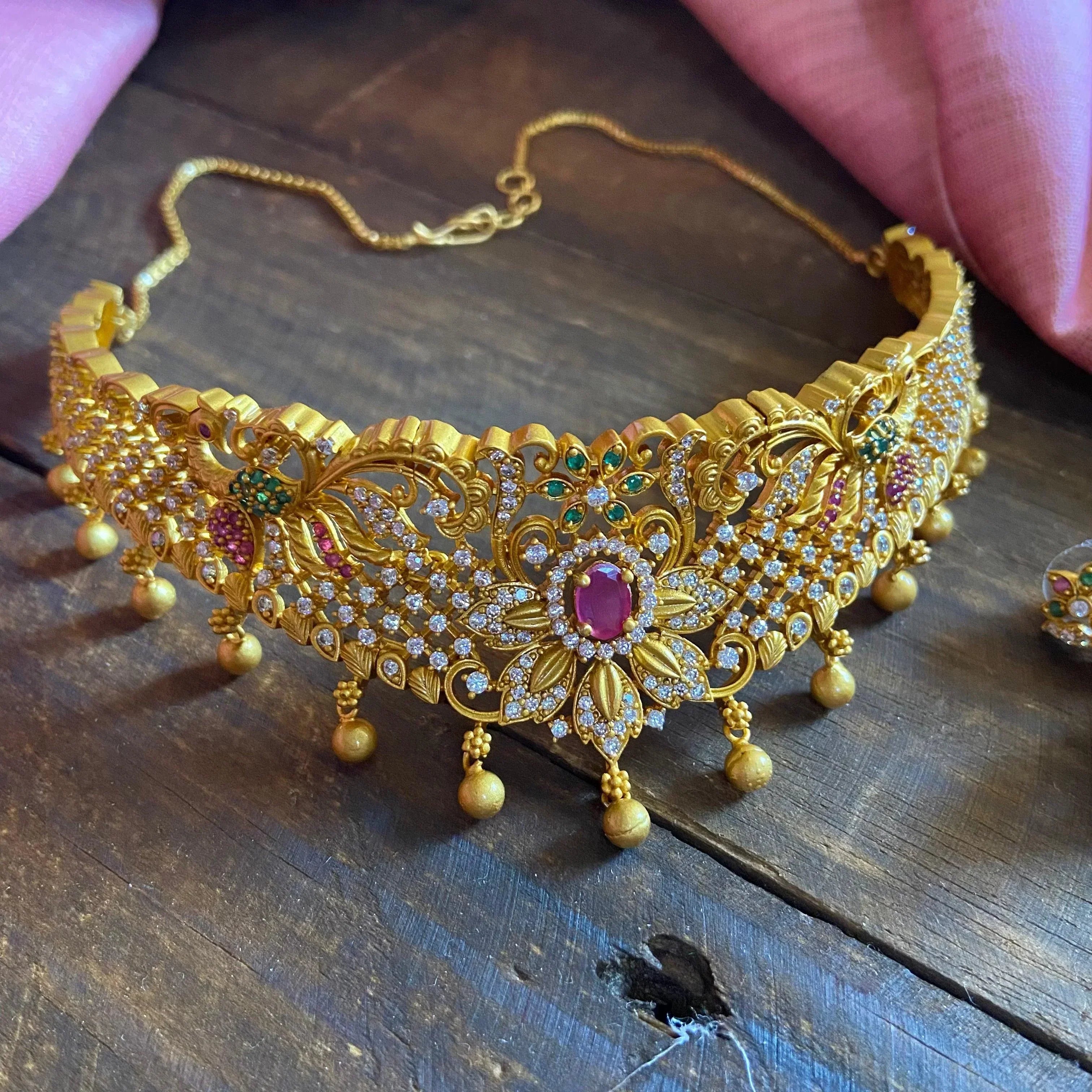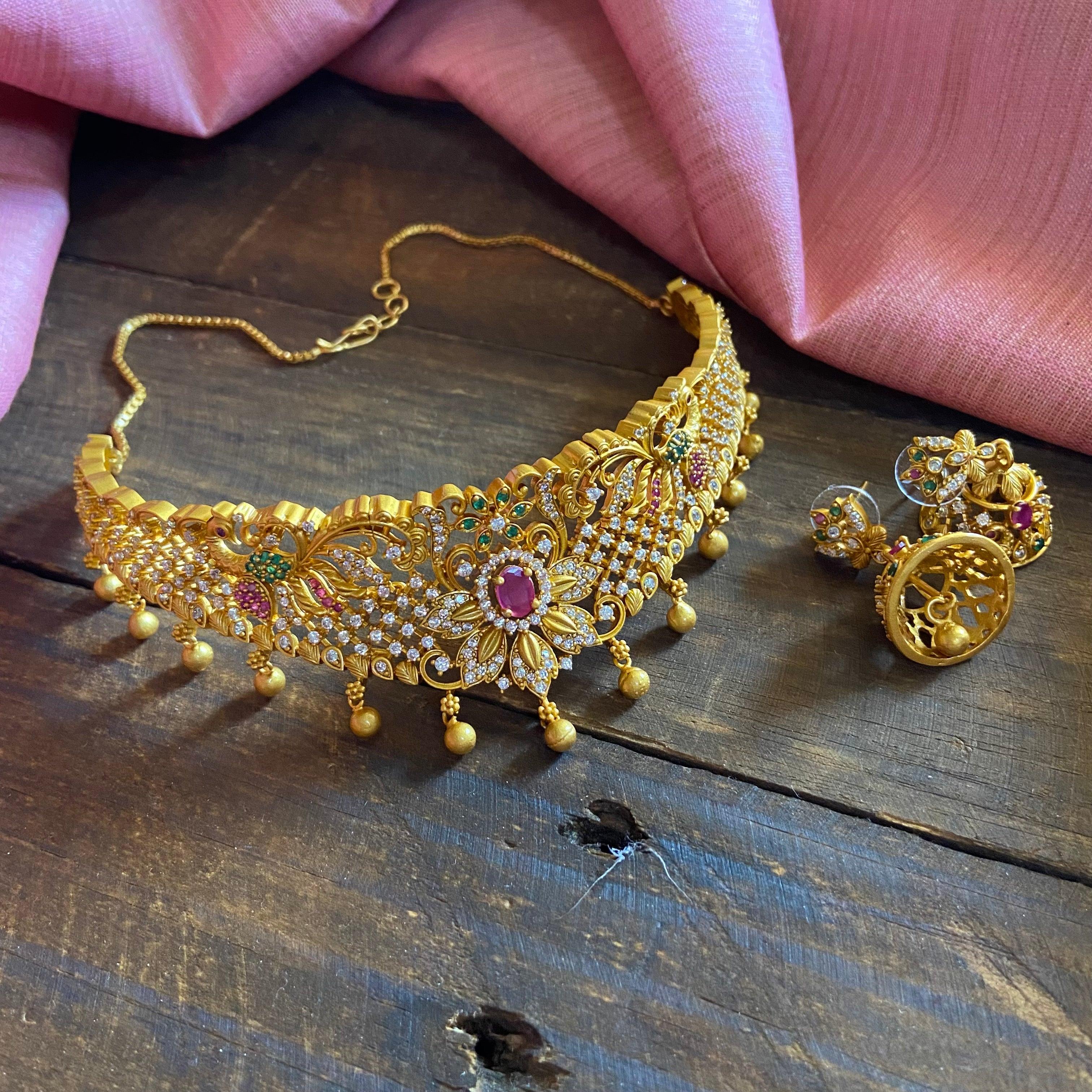 TYPE: Premium Quality High Neck Choker Necklace Set with Jhumkas