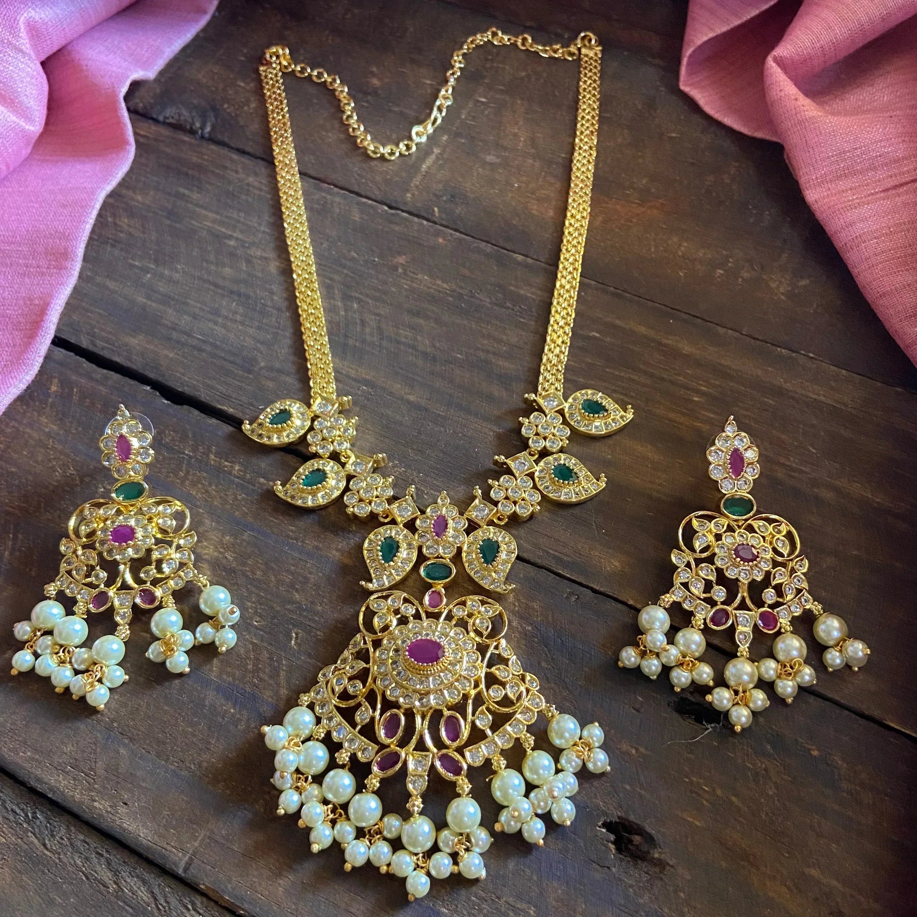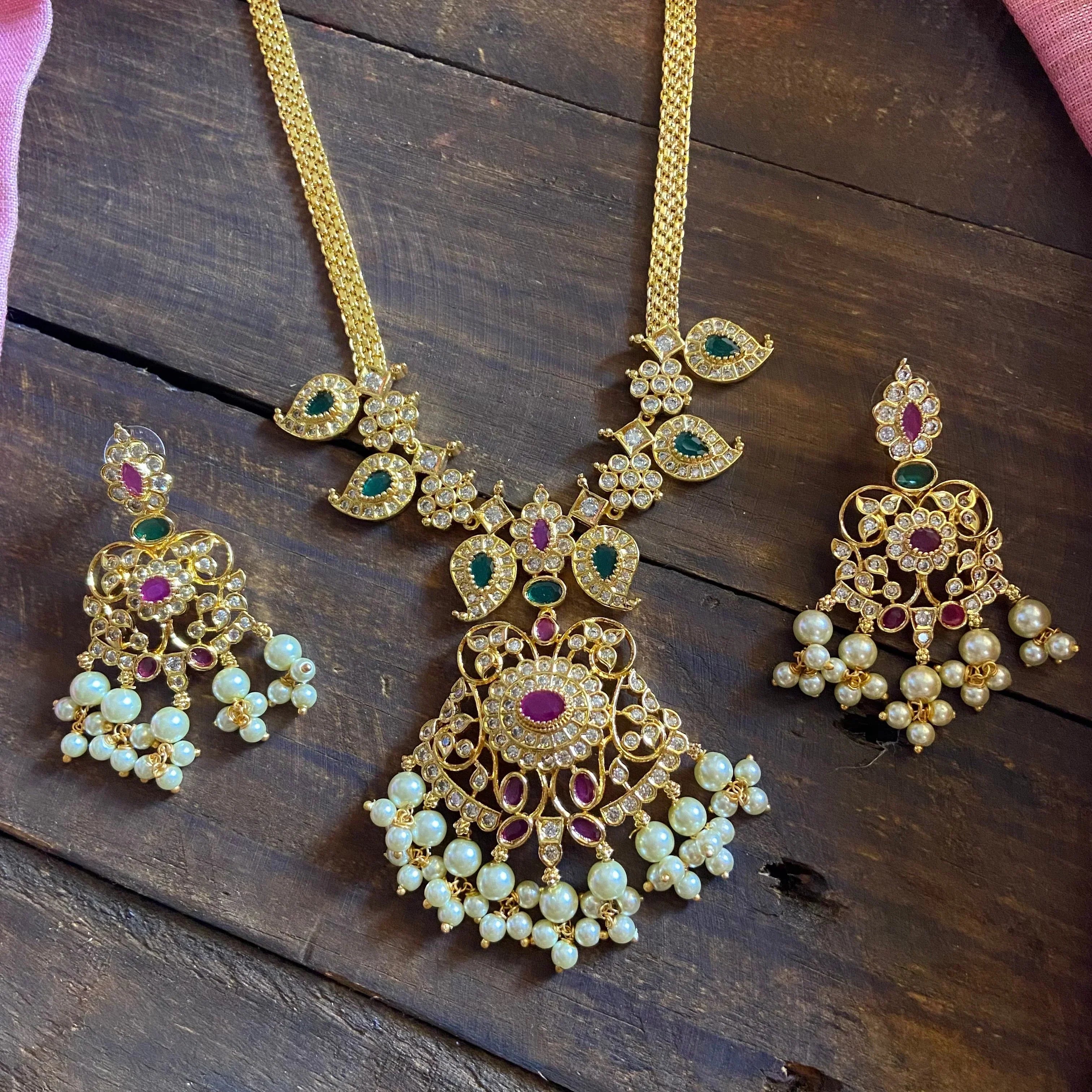 TYPE: Premium Quality Kemp Necklace Set with Jhumkas