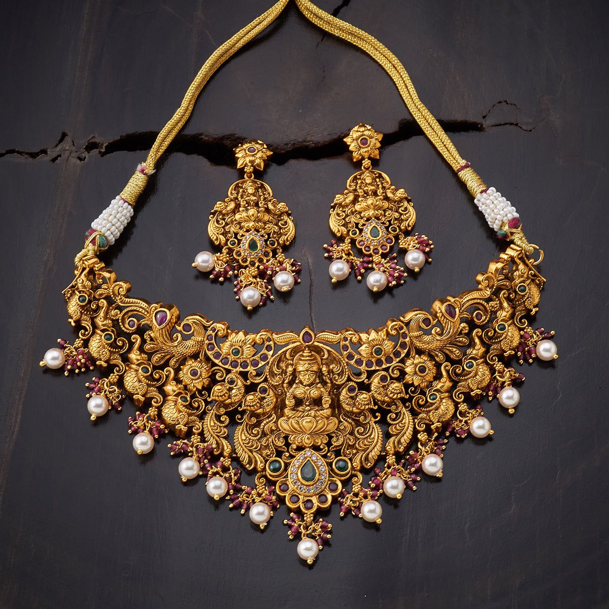 Base Metal: Copper Alloy Stone: Synthetic Stones & Beads Product Weight (gms): 78 Earring Weight: 22 Earring Length (cms): 6 Earring Style: Hangings Earring Closure Type: Push Back Product Details: Adjustable Thread