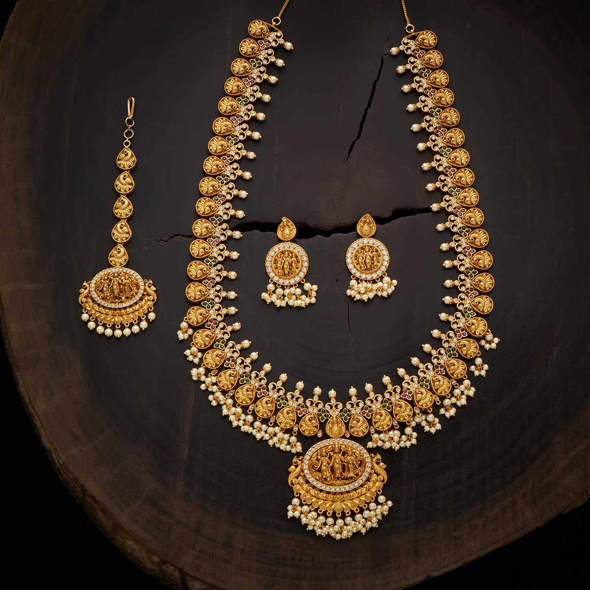 Base Metal: Copper Alloy Stone: Synthetic Stones & Beads Product Weight (gms): 193 Product size/Length (cm): 11 Earring Weight: 20 Earring Length (cms): 5 Earring Style: Hangings Earring Closure Type: Push Back Tikka Weight: 24 Product Details: Adjustable Chain