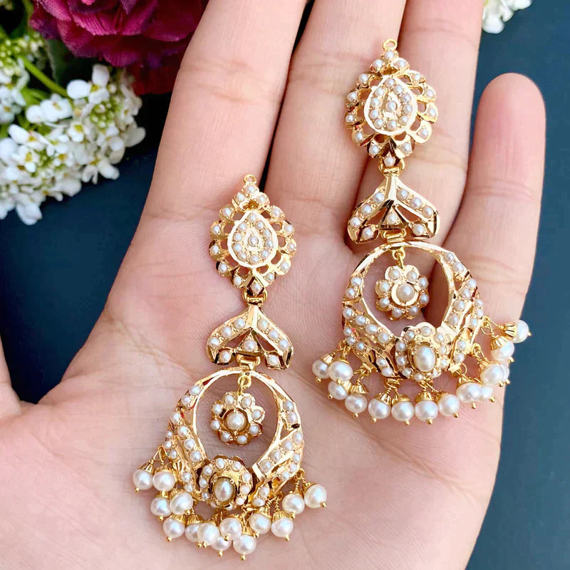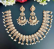 TRADITIONAL PEARL NECKLACE SET IN 22K GOLD MATCHED WITH CHANDBALI EARRINGS