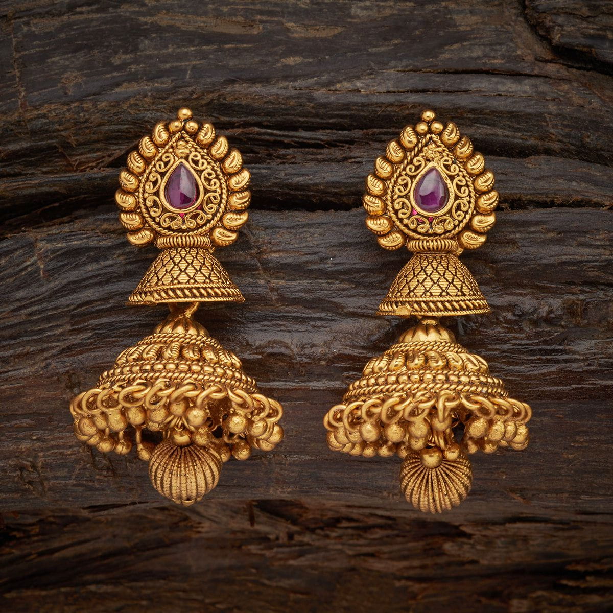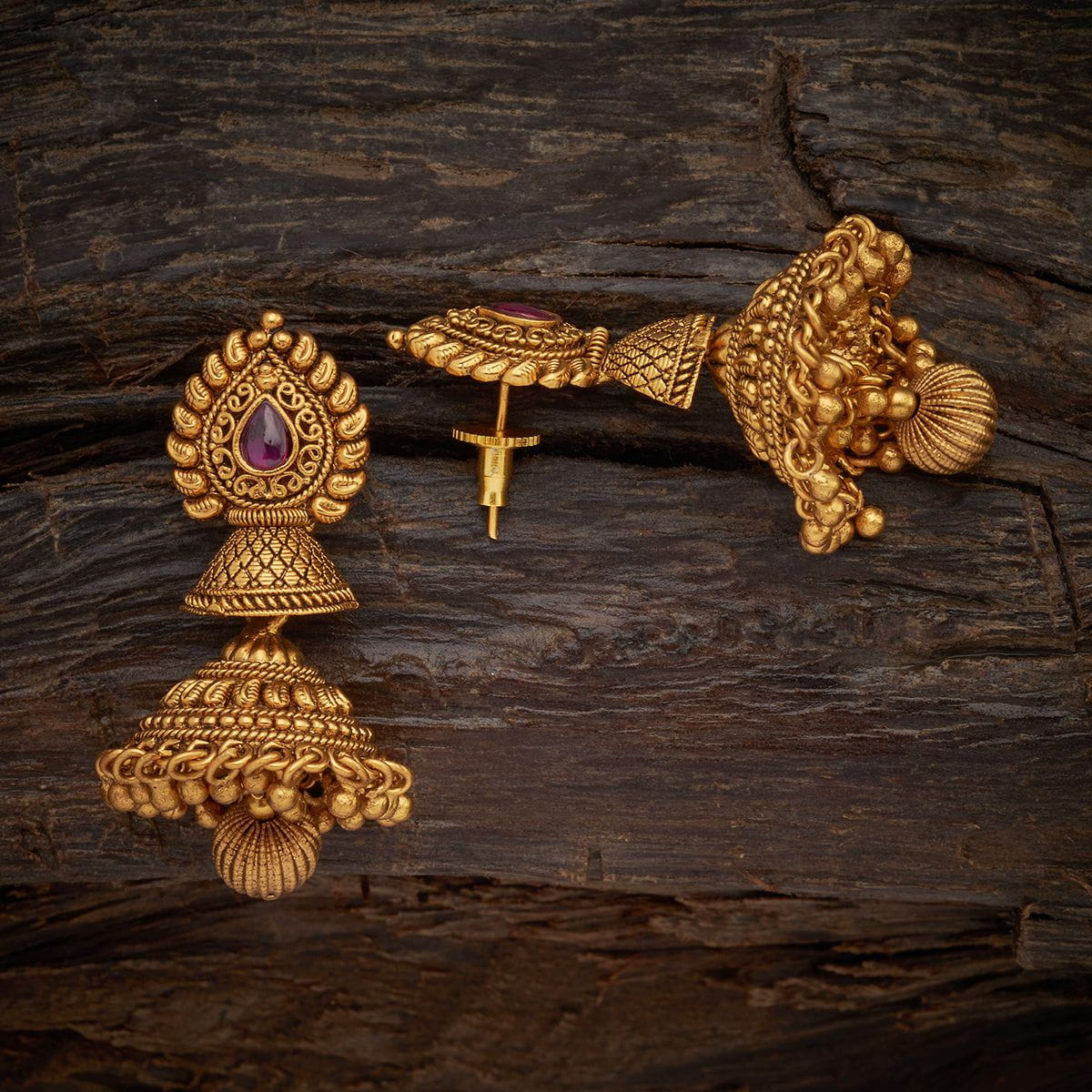 Base Metal: Copper Alloy Stone: Synthetic Stones Earring Weight: 32 Earring Length (cms): 5 Earring Style: Jhumkas Earring Closure Type: Push Back