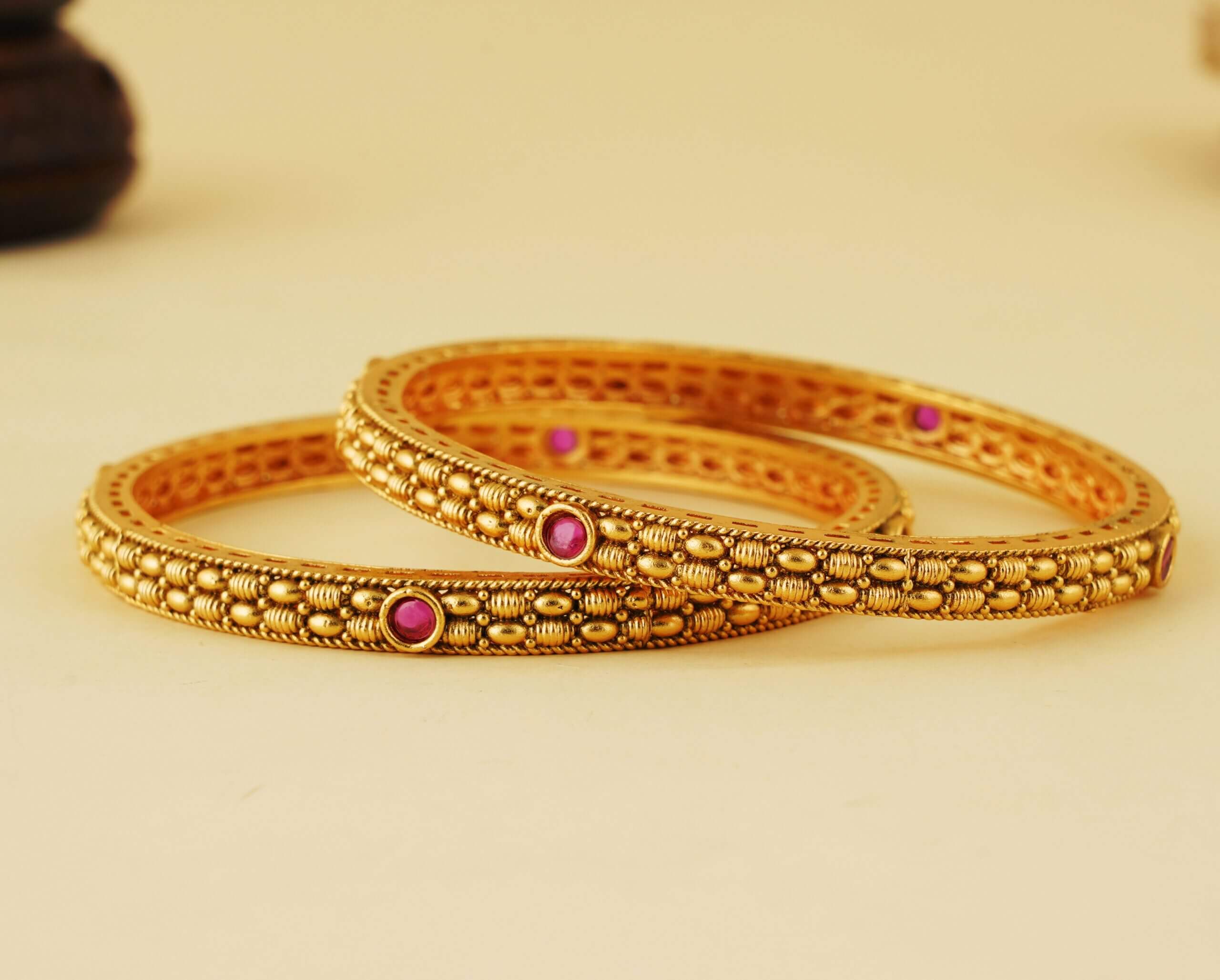 ANTIQUE GOLD PLATED STONE BANGLE SET