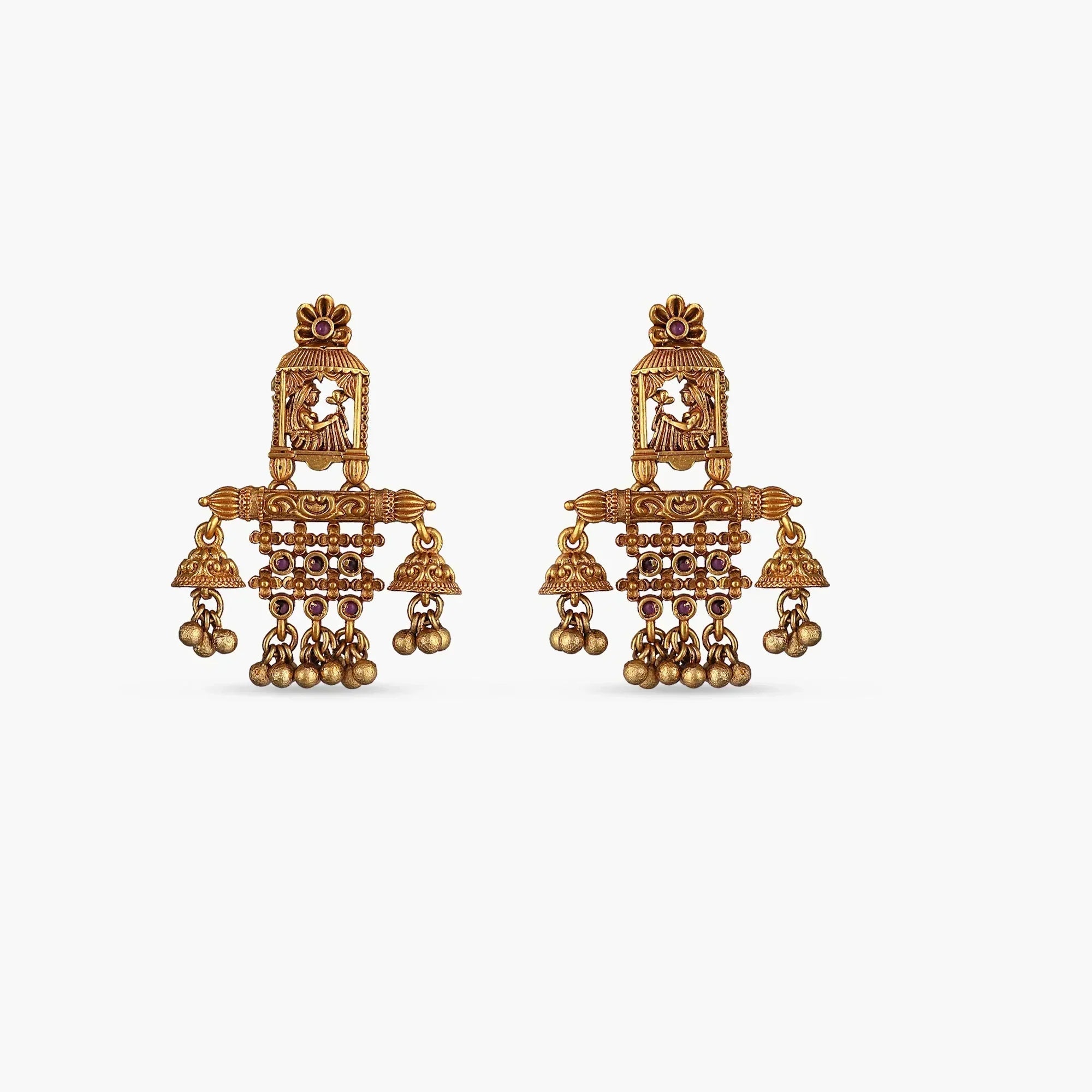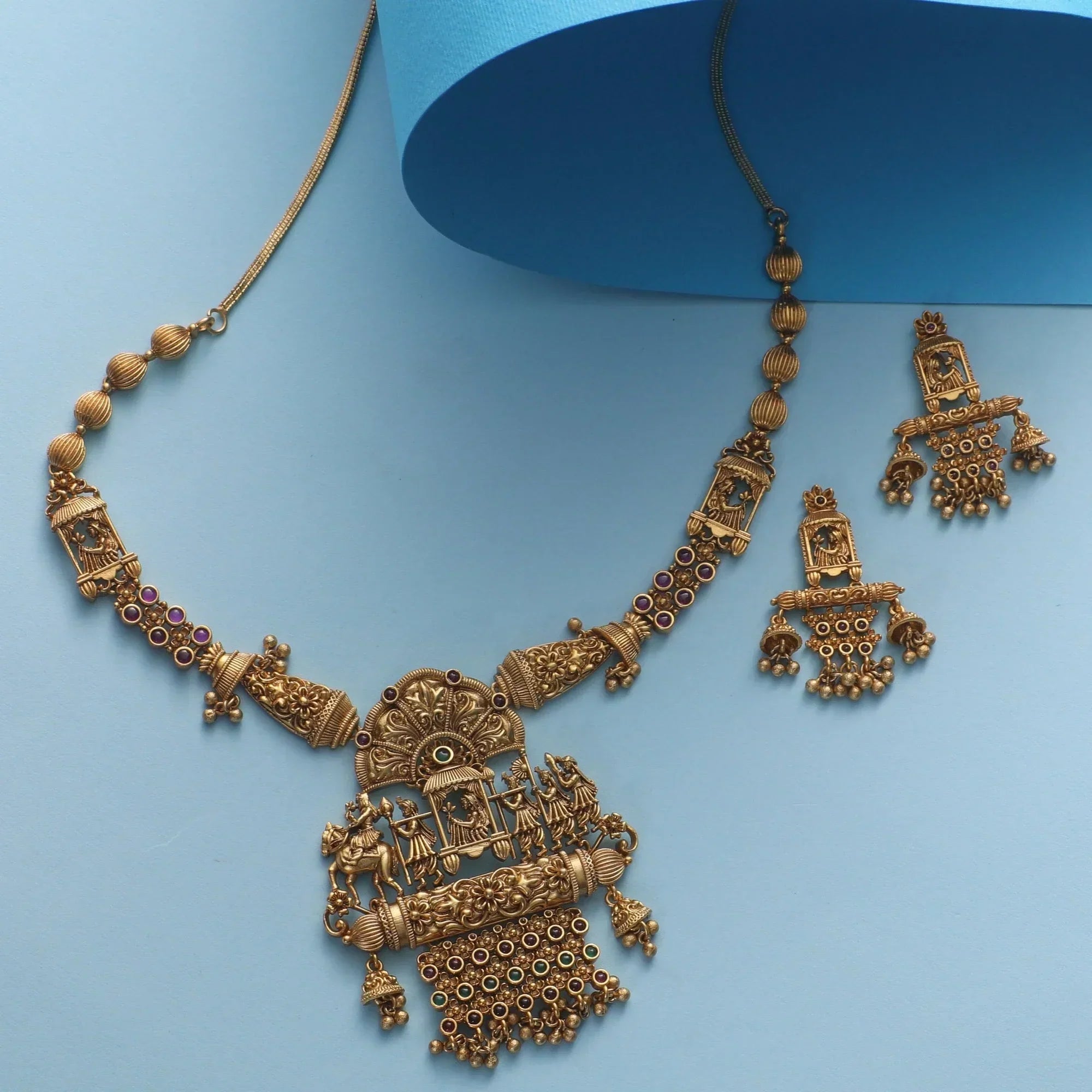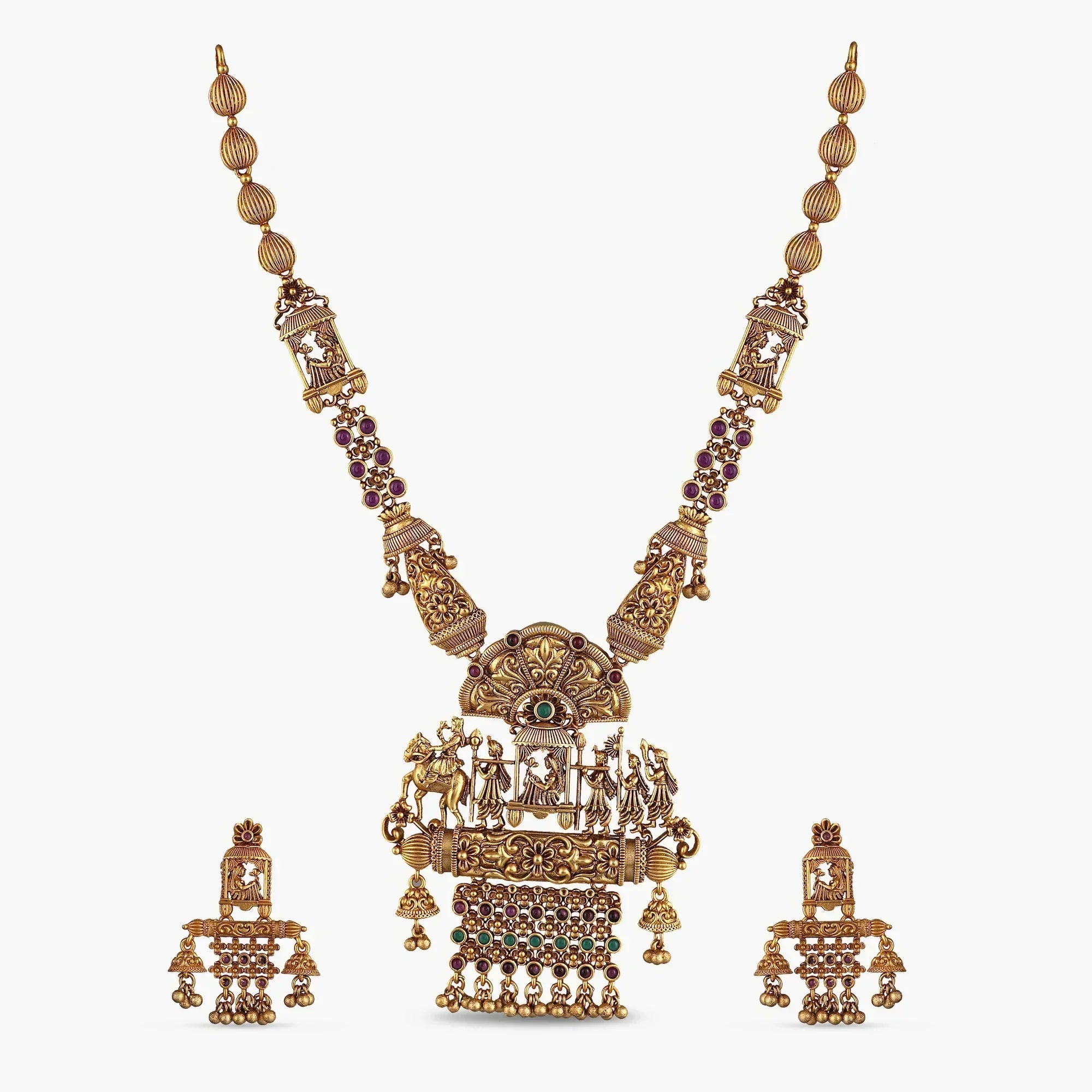 this long necklace is made from high-quality kempu stones and antique gold plating to give a classic royal look.