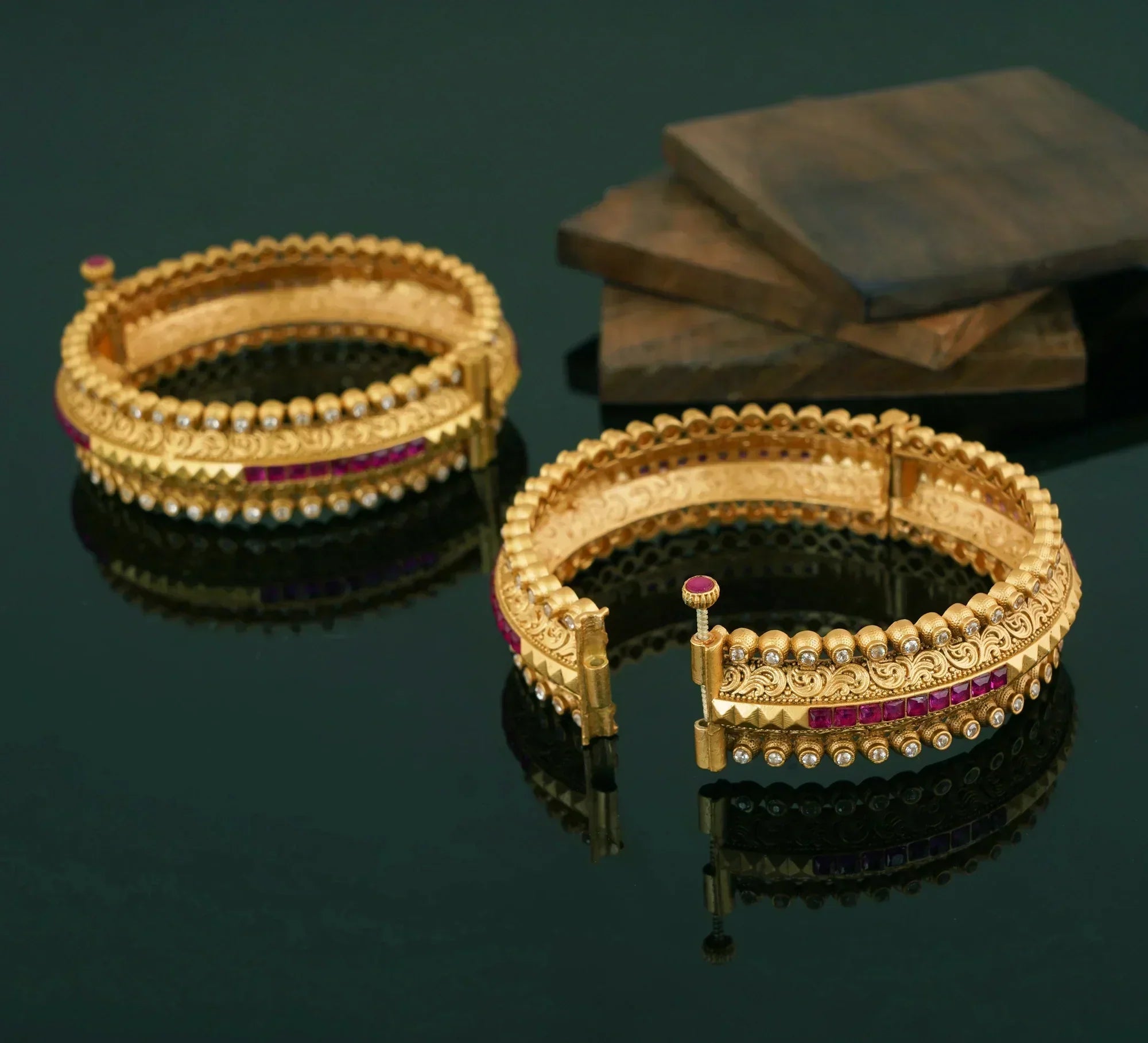 BEAUTIFUL KUNDAN & RUBY BANGLE SET