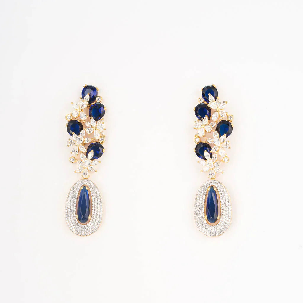 Blue stones with american diamonds and zircon ear danglers