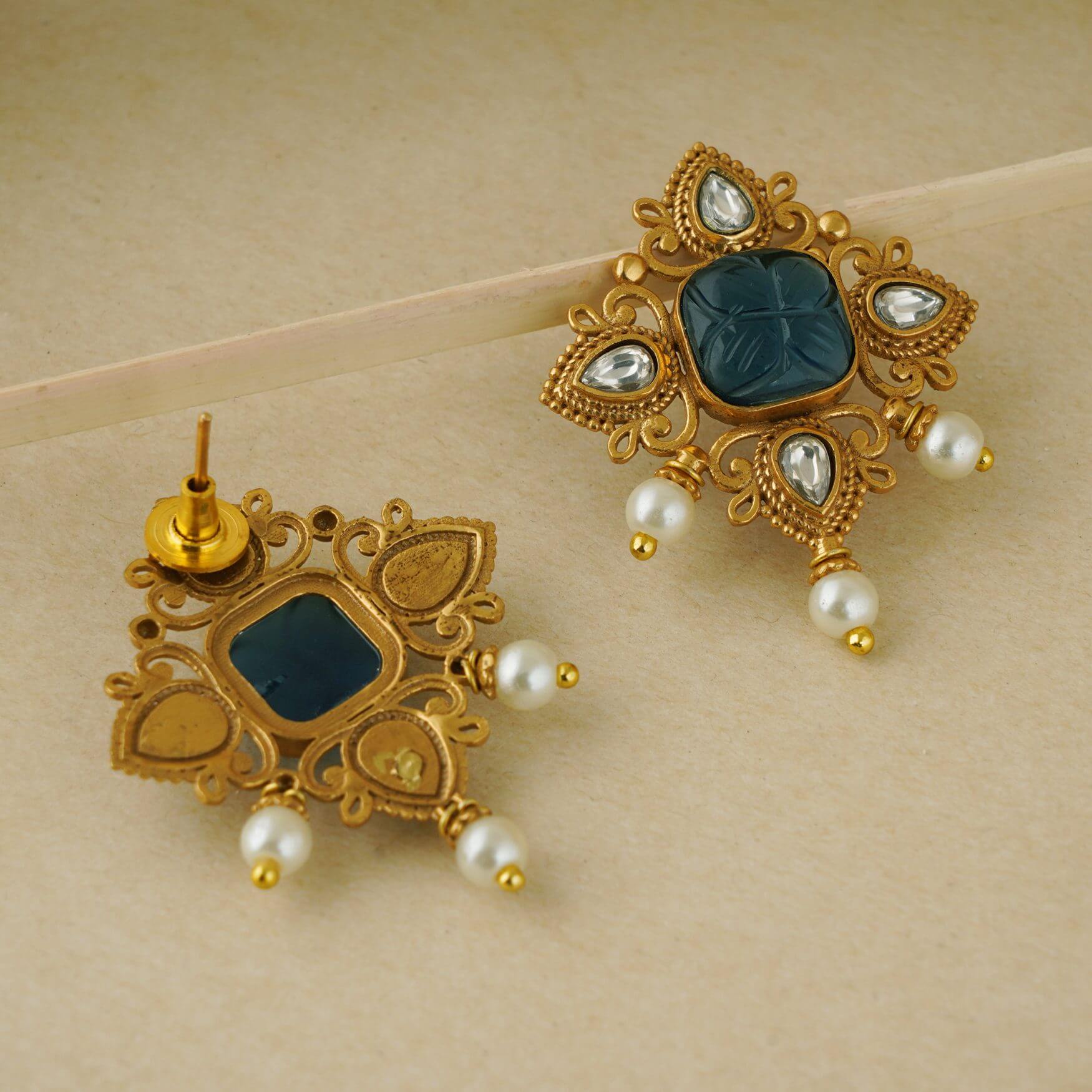 CUTE GOLD PLATED STONE PEARL DROP STUD