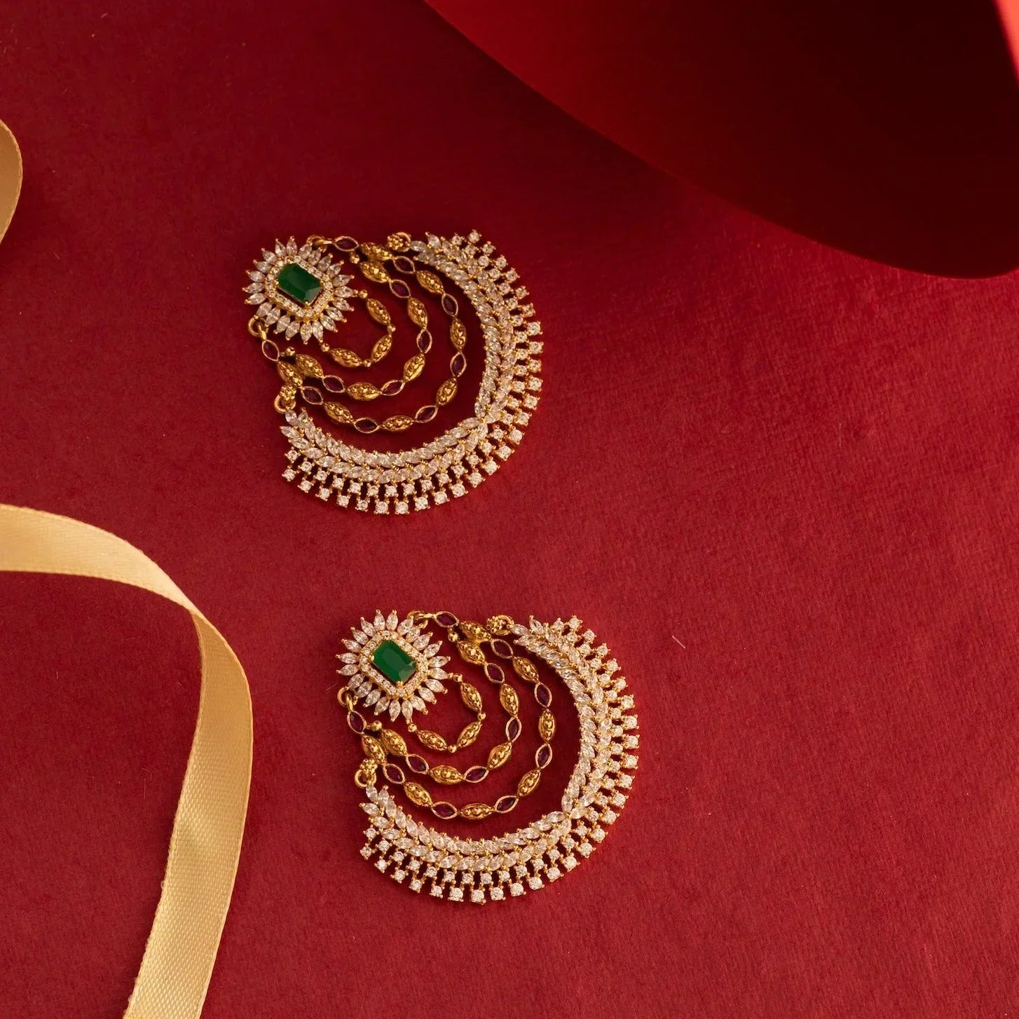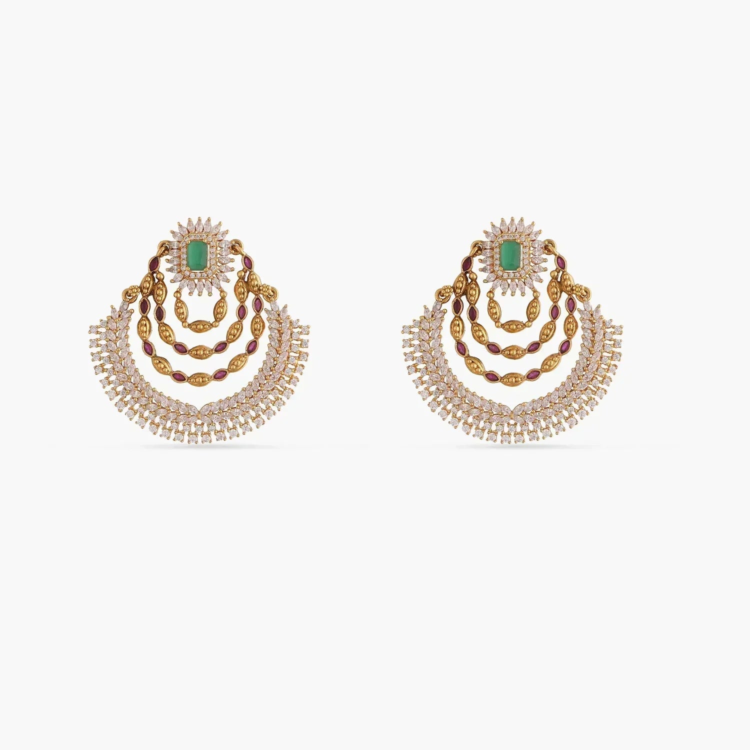 Be the attraction of the party with these earrings Accentuated with sparkling CZ stone on the antique gold-tone base, this pair of earrings exude a magnificent charm in a subtle way.