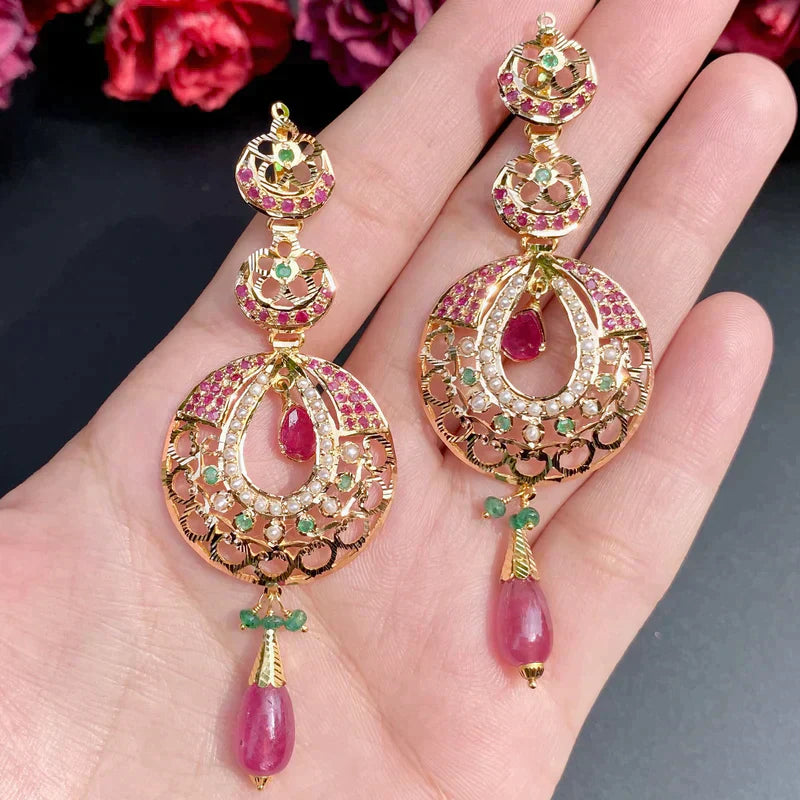 Featuring a delicate jadau necklace set and set with rubies, emeralds and pearls.