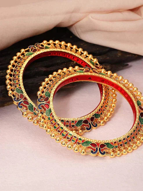 Enamel with Peacock Pacheli Set of 2 Bangles