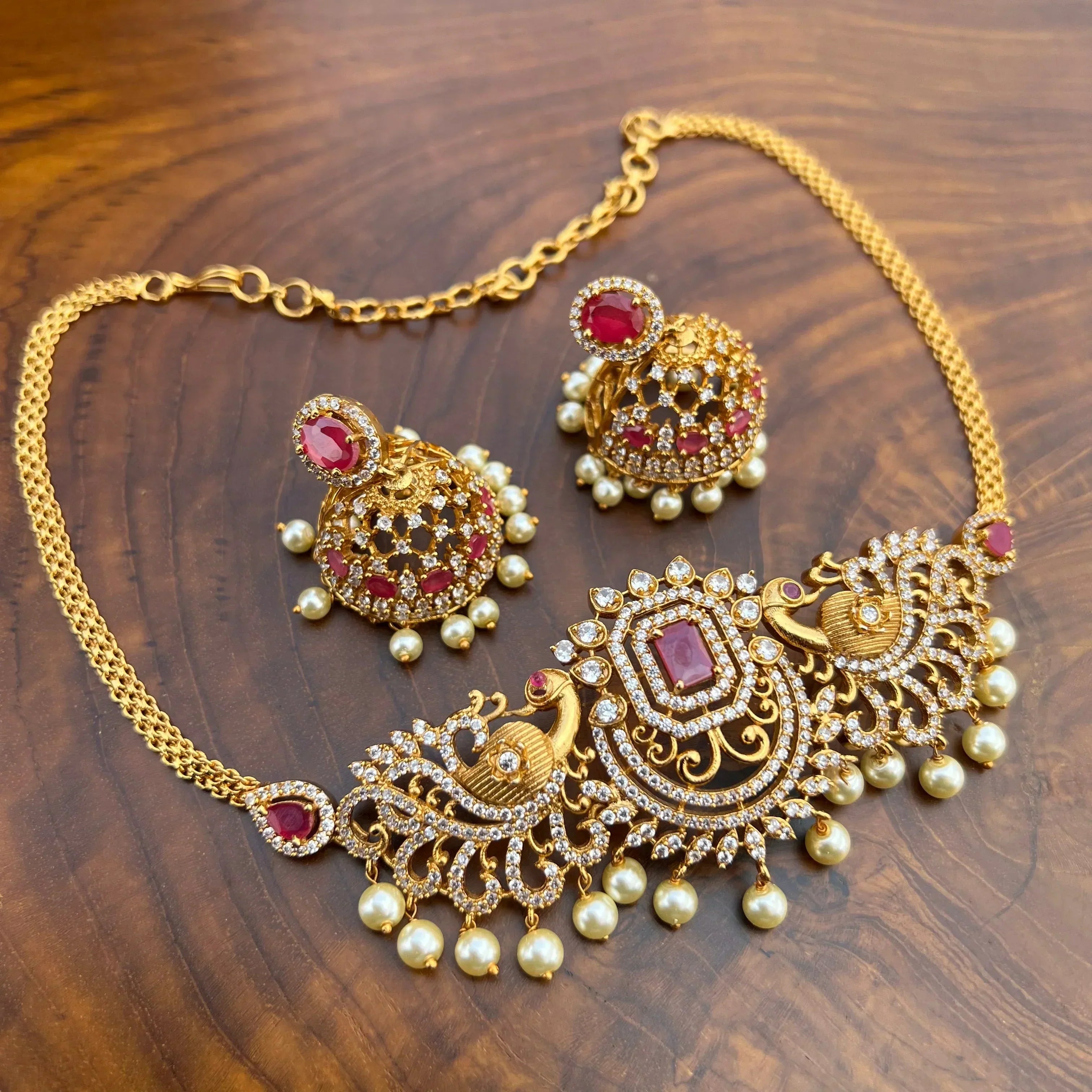 TYPE: Premium Quality AD Choker Necklace Set with Jhumkas