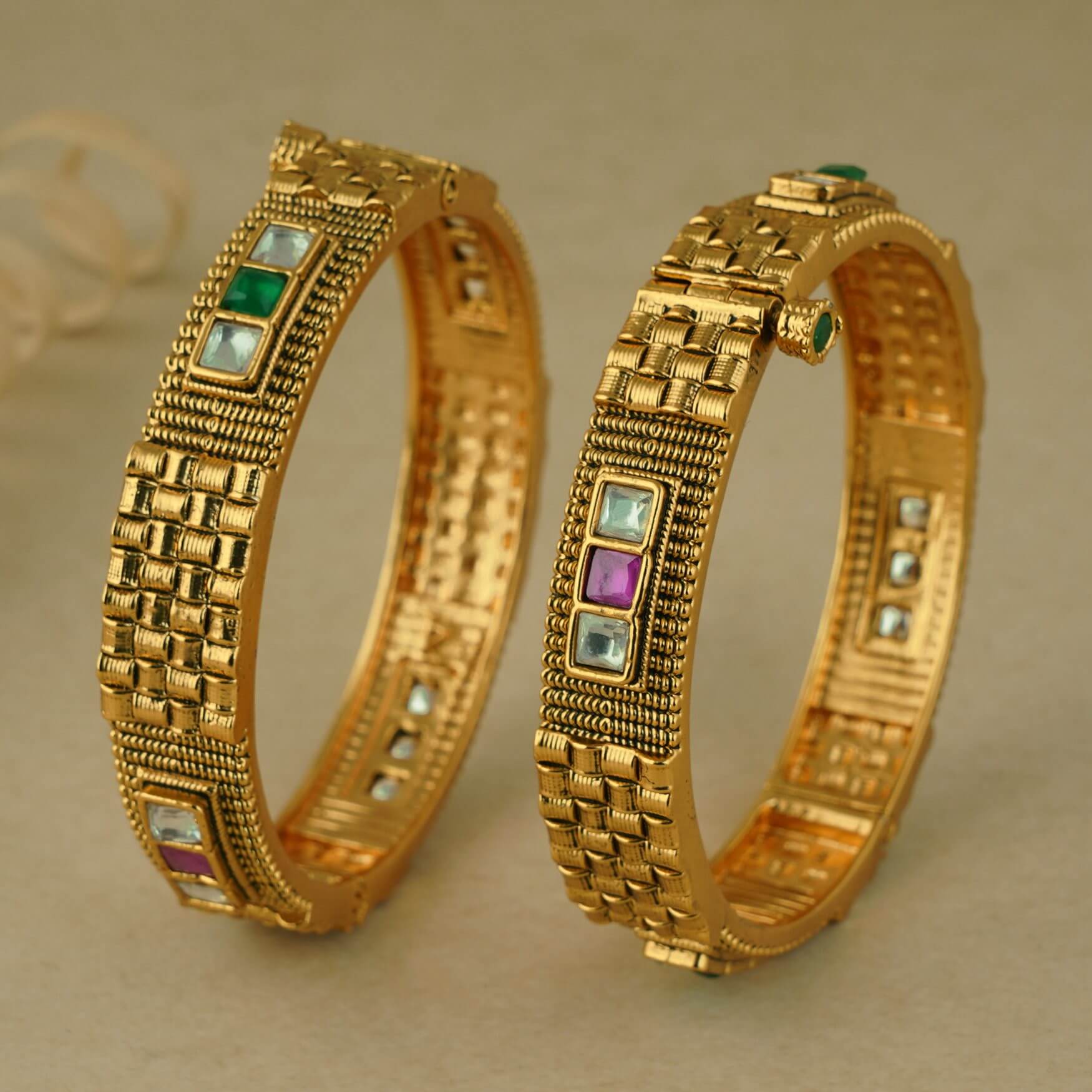 GOLD PLATED KUNDAN RUBY BANGLE SET