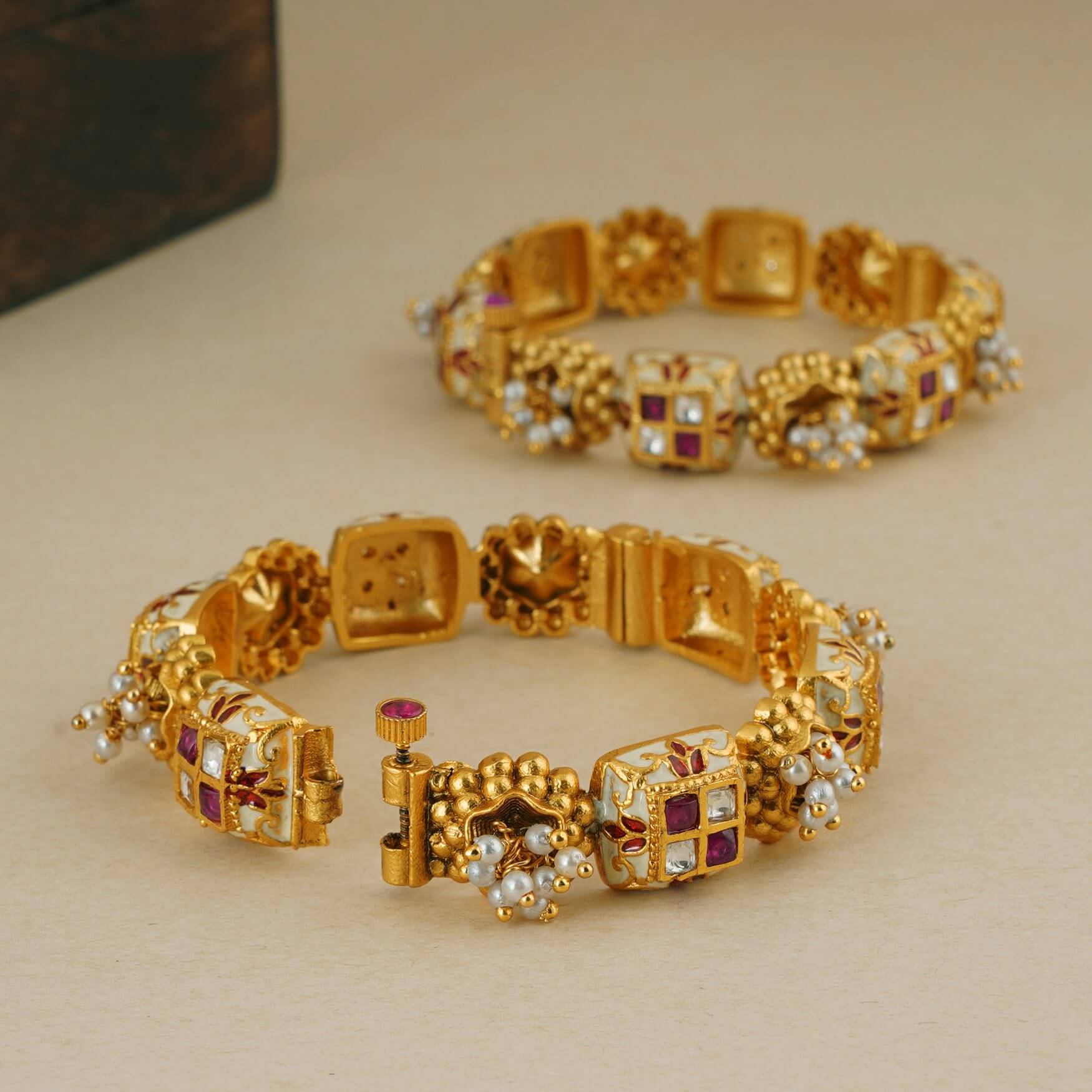 GOLD PLATED MEENAKARI RUBY KUNDAN BANGLE SET
