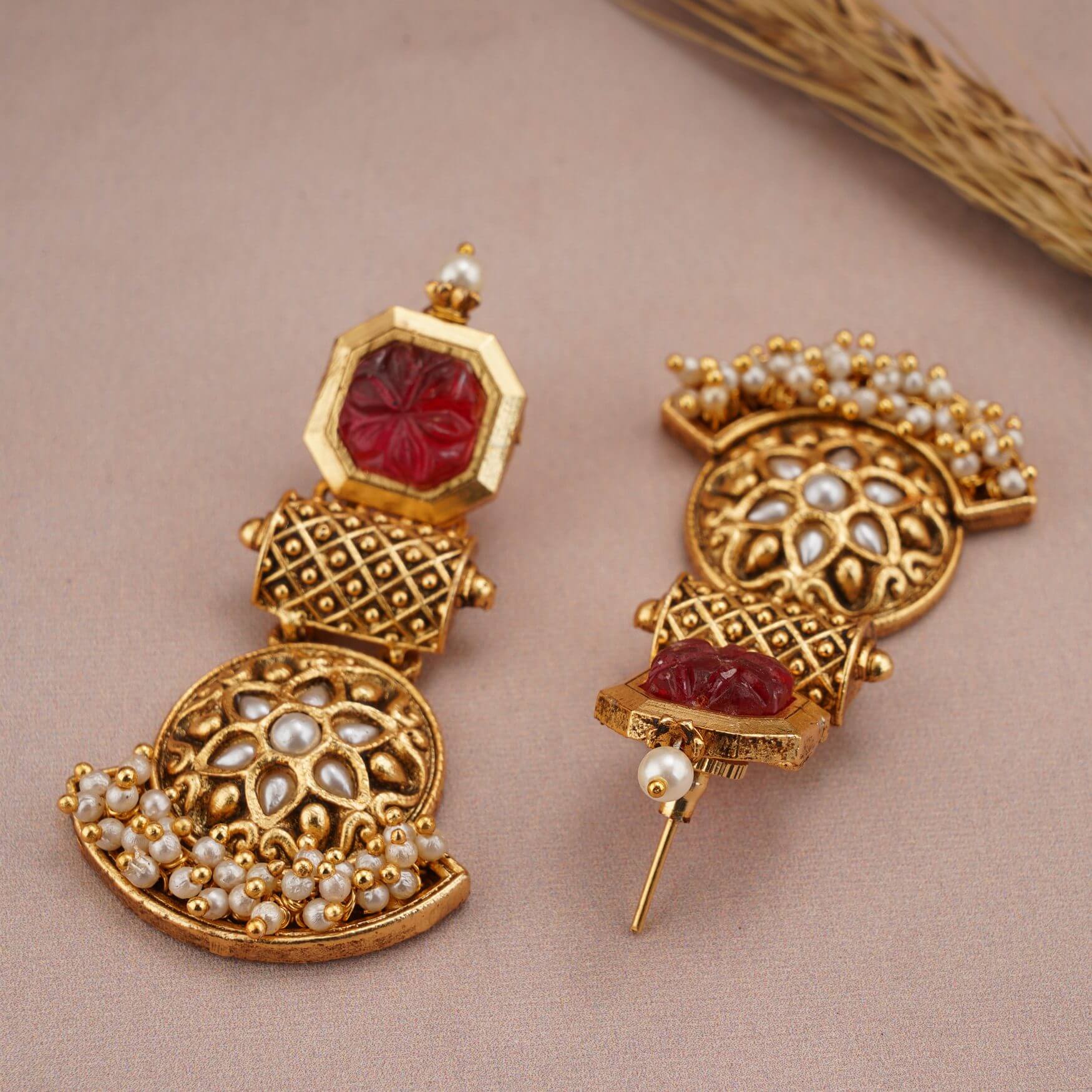 GOLD PLATED PEARL DROP STONE EARRING