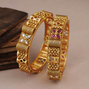 GOLD PLATED STONE OPENABLE BANGLE SET
