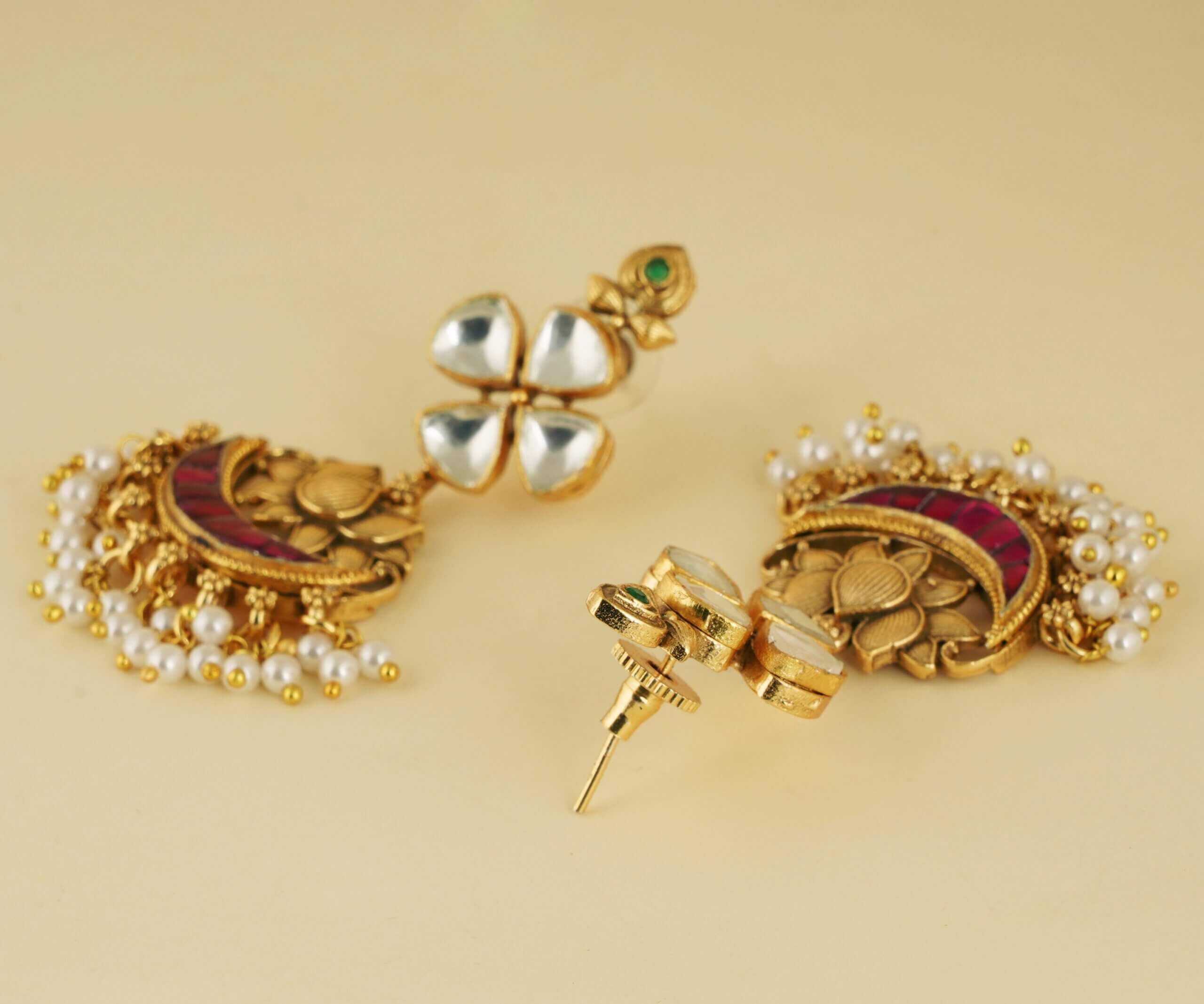 LOTUS INSPIRED PACHI KUNDAN EARRING