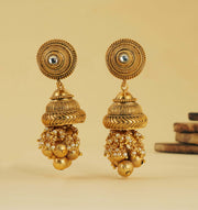PLAIN GOLD PLATED BALLS JHUMKA EARRING