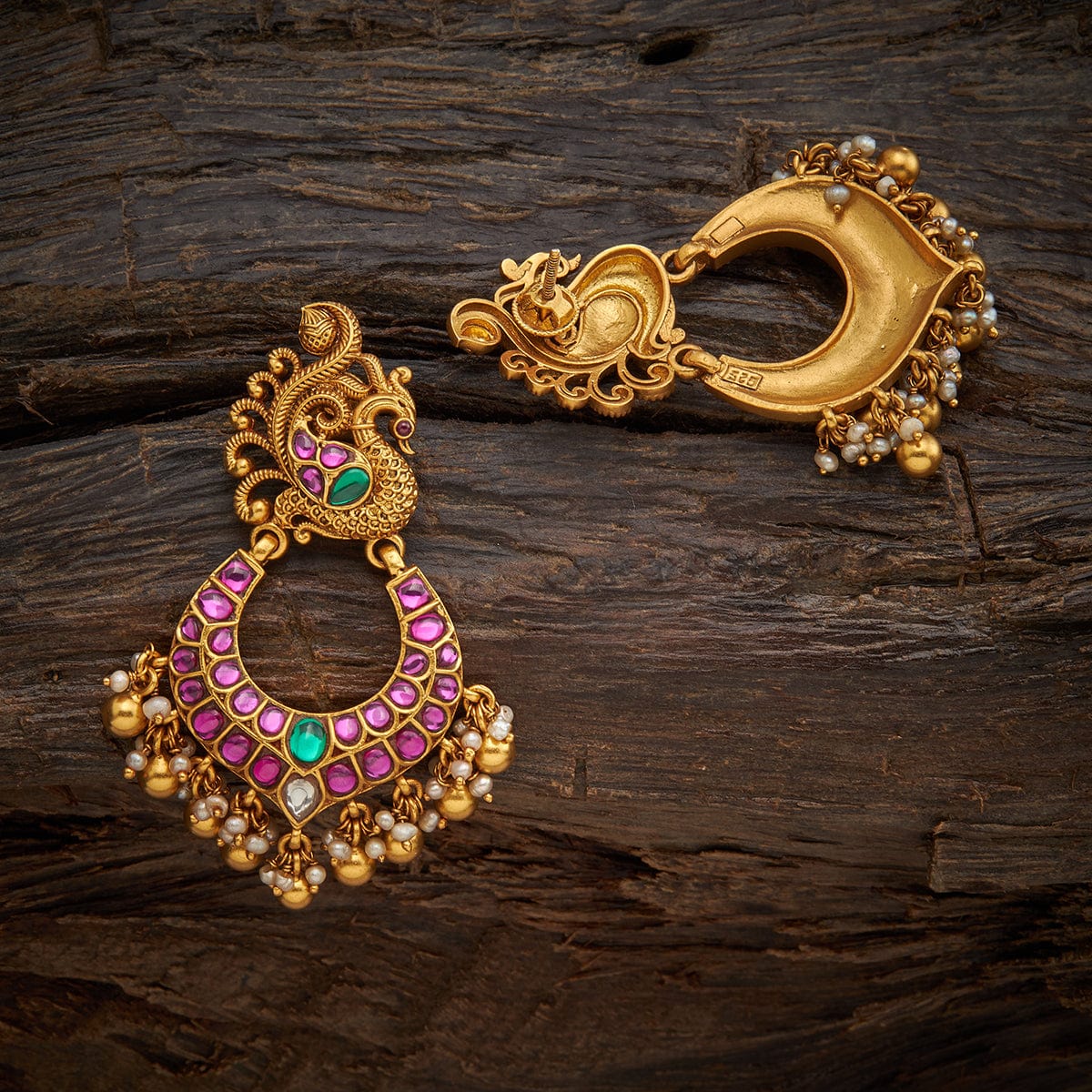Base Metal: 92.5 Silver Stone: Spinal Earring Weight: 41 Earring Length (cms): 6 Earring Style: Chandbalis Earring Closure Type: Screw Back